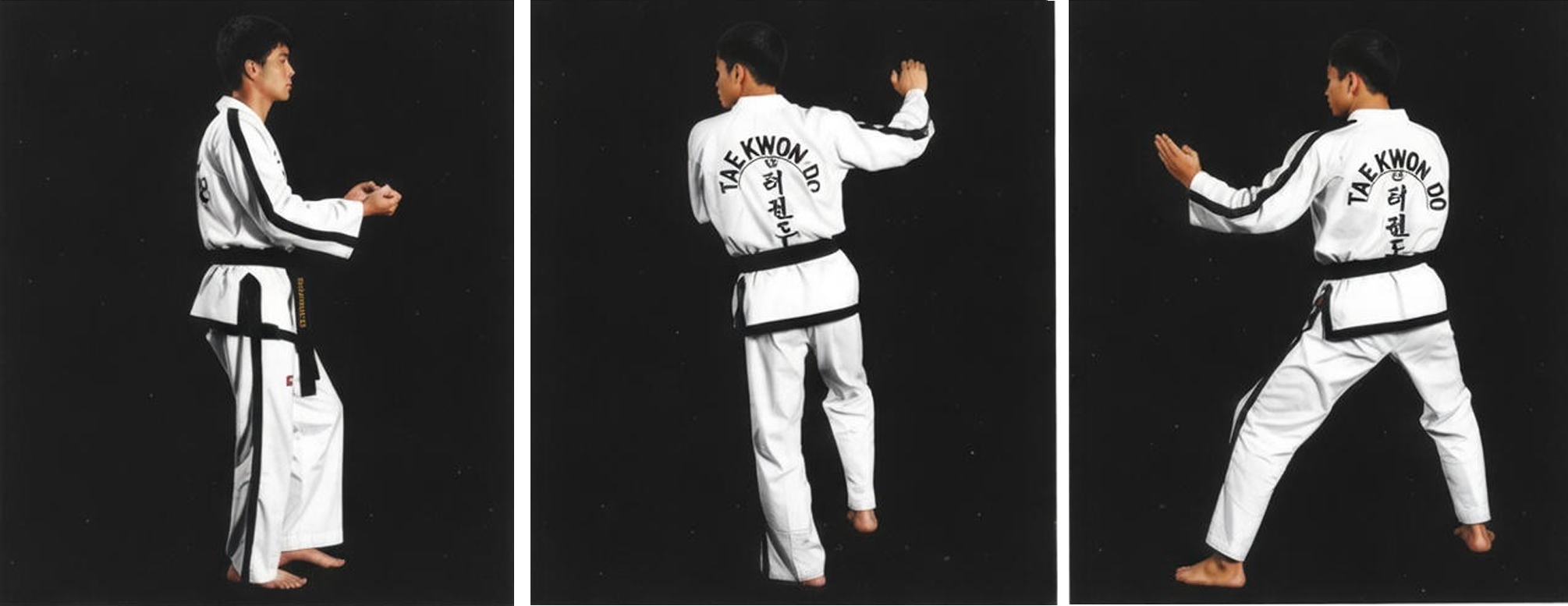 Photos of the stepping after the front snap kick in the ITF Taekwon-Do Pattern Kwang-Gae